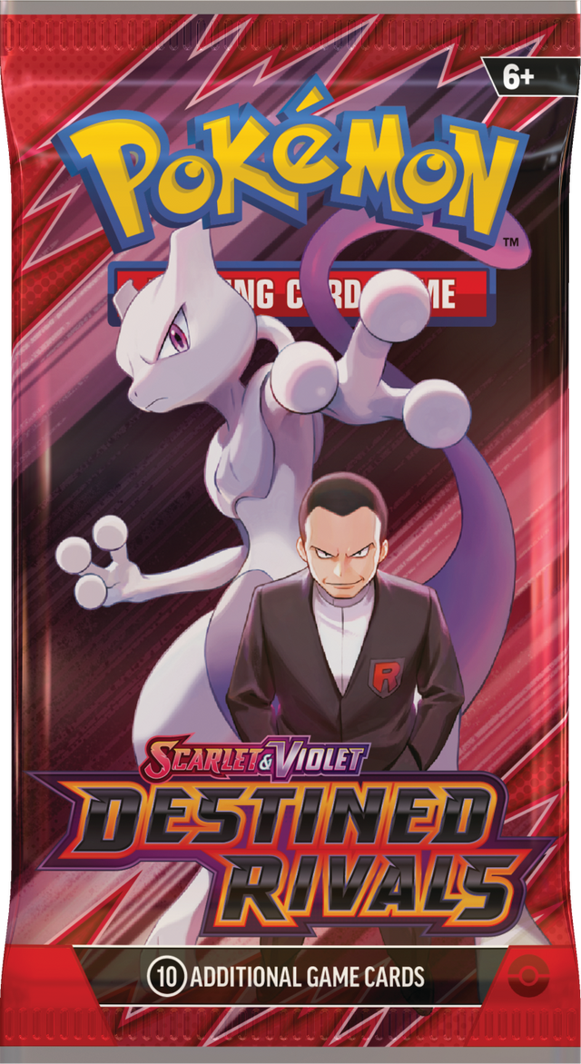 Begin your adventure with the Pokémon TCG: Scarlet & Violet - Destined Rivals Booster Pack. Each pack contains 10 cards and 1 Basic Energy, introducing you to the latest expansion's themes and mechanics. Experience the revival of Team Rocket.