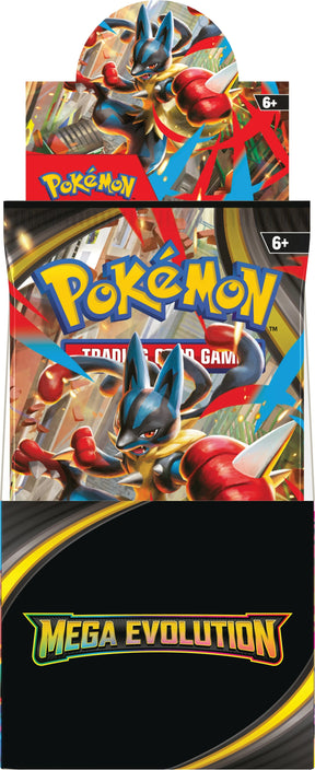 The Mega Evolution Booster Box is your gateway to the next epic chapter in the Pokémon Trading Card Game. Striving to become stronger, Pokémon of all types are putting everything on the line to achieve Mega Evolution Pokémon ex! Join forces with powerhouses like Mega Lucario ex and Mega Gardevoir ex, and discover even more Pokémon that deliver devastating attacks and massive HP.