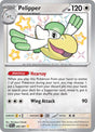 Explore the Pelipper from the Paldean Fates set in the Scarlet & Violet series! This Stage 1 Colorless Pokemon card features a Holofoil finish, and is classified as a Shiny Rare. A must-have for collectors and players alike! The card number in this set is 204/091.