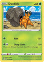 Explore the Dwebble from the Evolving Skies in the Sword & Shield series! This Basic Grass Pokemon card features a Reverse Holofoil finish, and is classified as a Common. A must-have for collectors and players alike!